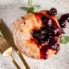 10. Iškeptas bandas perkelti į lėkštę ir patiekti su padažu. Mes dar jas pagardinome traškia šonine (kaip ją paruošti, žr. patarimus) ir pabarstėme sulkintais krapais bei svogūnų laiškais.