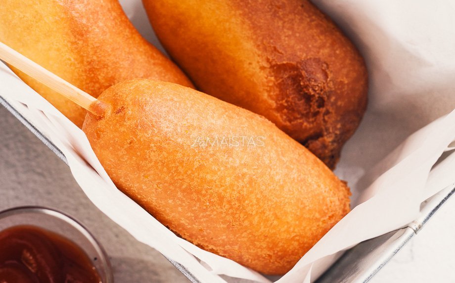 7. Corn dogs tradiciškai patiekiami su pomidorų padažu bei garstyčiomis, bet galite rinktis ir kitus savo mėgiamus padažus.