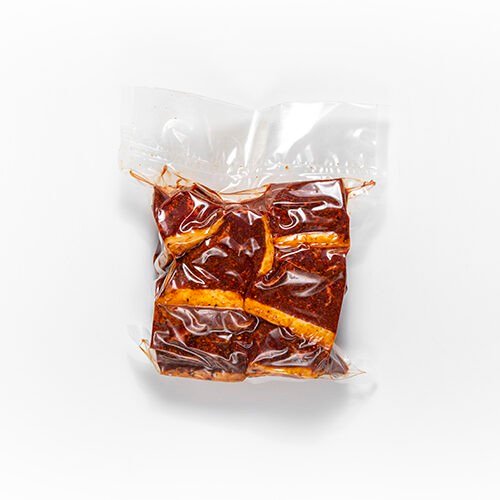 Sudedamosios dalys: sausai brandinta mėsinių galvijų mėsa 98,7%, pluoštinių kanapių sėklos, druska, raudonos saldžiosios paprikos, nerafinuotas rudasis cukrus Demerara, citrinų žievelės, kuminai, raudoni aitrieji čili pipirai Chipotle, dažiklis paprikų ekstraktas, augalinis aliejus