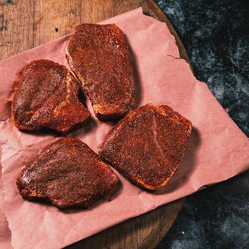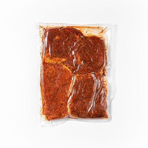 Kad kiauliena būtų sultinga, minkšta ir ryškaus skonio, užtenka pačios aukščiausios kokybės mėsos ir gero prieskonių mišinio, kurį sukūrėme patys. Rekomenduojame kepti ant tiesioginės kaitros, apie 5 – 7 minutes, iki 74 laipsnių vidinės temperatūros. Nepamirškite vartyti