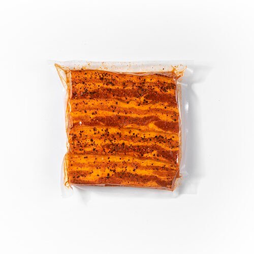 Jei darome, tai darome kaip pridera: kruopščiai atrinkta kokybiška šoninė, marinuota tik sausu prieskonių mišiniu, kurį sukūrėme patys. Gabalėliai supjaustyti tobulo dydžio gabalėliais kepimui. Kepant žemesnėje temperatūroje, šoninė bus itin sultinga ir minkšta