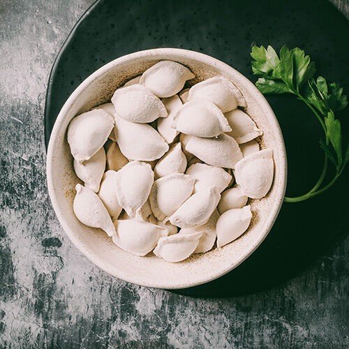 Koldūnai gaminami su mūsų pačių sausai brandinta ir išpjaustyta jautiena. Gaminami tik iš kokybiškų ir natūralių ingredientų
